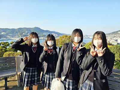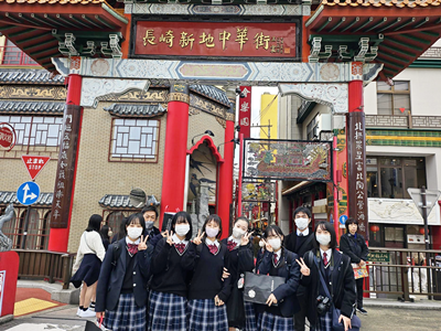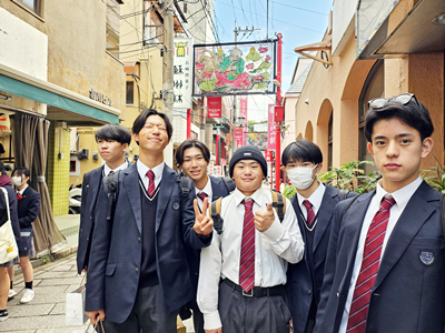 | 普通科長崎班別研修では,長崎新地中華街,出島,グラバー園など長崎市内各地を散策しました。天気にも恵まれ,穏やかな気候のなか見学,お土産の購入など,各班の計画にしたがって楽しんでいる様子でした。 | ||