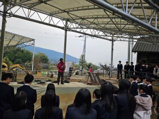 山梨県立青洲高等学校 > 学校行事 > 修学旅行 普通科 2023年11月16日カテゴリー: 学校行事 修学旅行 普通科 11月16日 普通科は熊本に到着後,益城町で平成28年熊本地震で表出した国天然記念物の断層を見学しました。 益城町語り部の会のみなさまによる解説もいただき,実際に震災を経験された方のお話を生徒は真剣に聞いていました。 熊本地震は震災前,発生確率が~0.9%といましたが,震度7を二度経験することになったというお話を聞きました。日頃から災害が起こるかもしれないという心持ちでできる備えをすることの大切さを改めて実感しました。 普通科はこの後熊本駅から九州新幹線に乗って博多の宿舎へ向かいます。