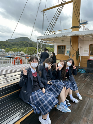 山梨県立青洲高等学校 > 学校行事 > 修学旅行最終日③ 2023年11月17日カテゴリー: 学校行事 修学旅行最終日③ 3組大宰府天満宮です。 2組九十九島遊覧船にのりました!天気が心配でしたが、乗っている間は綺麗に晴れてくれました! 4組、最終日の見学が終了したので空港に向かいます。