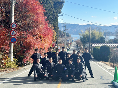 11月26日、河口湖で行われた富士山マラソンに、甲府工業と合同でランナーの応援を行いました。