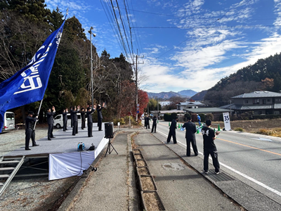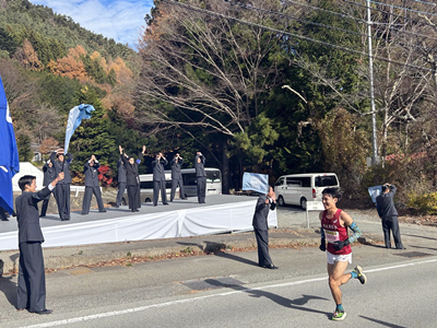 山梨県立青洲高等学校 > 部活動 > 応援 > 応援部 富士山マラソン合同応援 2023年11月28日カテゴリー: 部活動 応援 応援部 富士山マラソン合同応援 11月26日、河口湖で行われた富士山マラソンに、甲府工業と合同でランナーの応援を行いました。 本校生徒は1人の参加でしたが、甲府工業に負けない応援をしました。