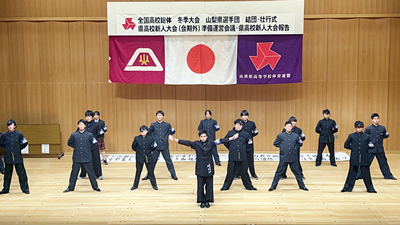 12月5日(火)、全国高校総体冬季大会山梨県選手団結団壮行式に、甲府工業・日川高校・塩山高校と合同応援団を組み参加してきました。