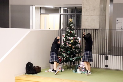 今年も生徒会によるクリスマスツリーの装飾が行われました。