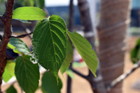 駐輪場横は桜の木でしょうか?生徒昇降口裏にはイロハモミジのようです。