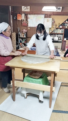 山梨県立青洲高等学校 > 学校行事 > 2/9 1年次スキー教室1日目⑤ 2024年2月9日カテゴリー: 学校行事 2/9 1年次スキー教室1日目⑤ 実習の様子です。 スキー実習見学者は午後はそば打ち体験をしました。