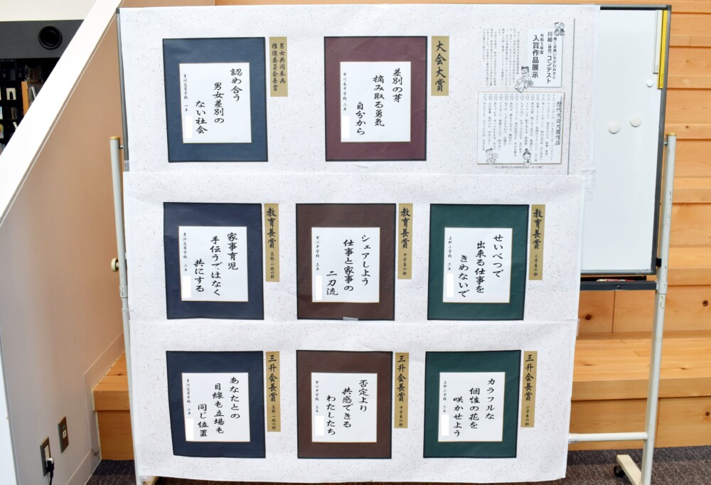 令和5年度の輝く笑顔いちかわみさと川柳(標語)コンテストの優秀作品の展示がアカデミックスクエアで行われています。