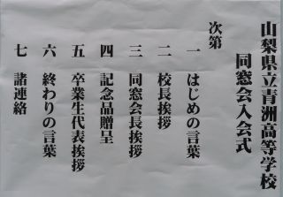 青洲高校2期生255名の同窓会入会式が行われました。小林校長はじめ、一期生で同窓会長の藤井ミッチー雄氏も神戸より駆けつけて温かいお祝いのメッセージをいただきました。同窓会から記念品も贈呈されました。