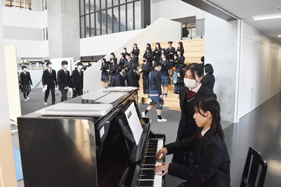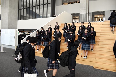 山梨県立青洲高等学校 > 部活動 > 音楽(合唱) > 音楽部新入生歓迎 4/11 2024年4月11日カテゴリー: 部活動 音楽(合唱) 音楽部新入生歓迎 4/11 朝の登校の時間、アカデミックスクエアにて 音楽部が合唱を披露しました。