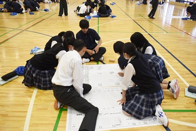 1年次の青洲学において、避難所設営ゲーム(HUG)が行われました。