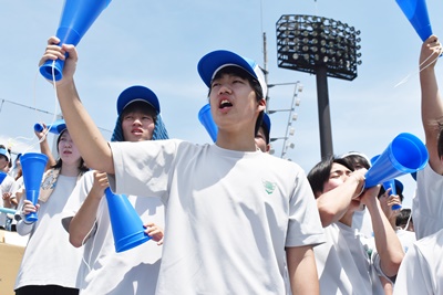 炎天下の中、開会式から演奏し続けてくださった吹奏楽部、応援をリードしてくださった応援団、生徒会、応援委員会、そして希望応援だったにも関わらず、また休日にも関わらず応援に来てくださった生徒、先生方。
