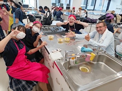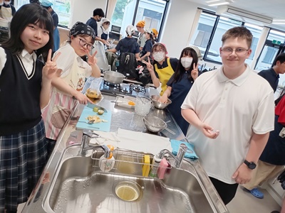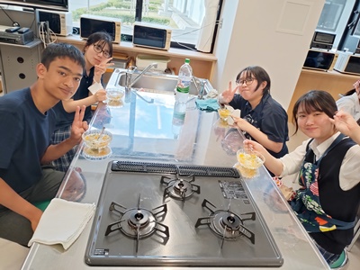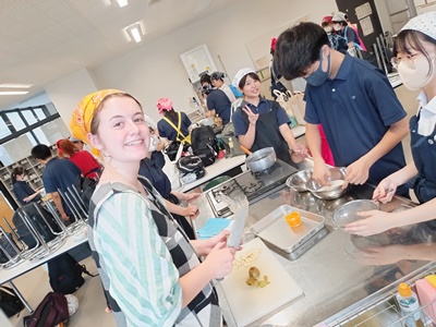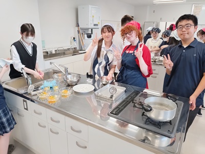 山梨県立青洲高等学校 > 部活動 > ESS > ESS部&家庭部による留学生とのデザート作り 2024年7月10日カテゴリー: 部活動 ESS 家庭 ESS部&家庭部による留学生とのデザート作り ESS部と家庭部のコラボ企画で留学生と一緒にデザートを作って一緒に食べました。 ESS部の3年次生が発案した、自然とコミュニケーションと笑顔が生まれる素晴らしい企画でした。