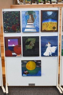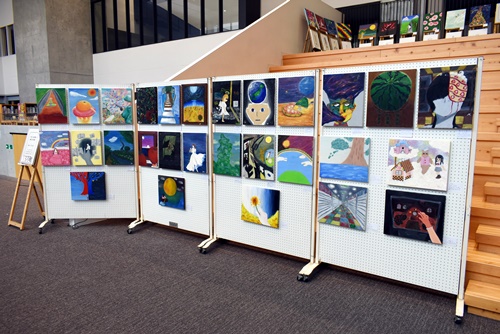 1年5,6組、美術選択者の授業中の課題の展示が行われています。
