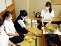 今日は1年生が講師の先生と、市川高校の先輩方にお茶を振舞っていただいていました。