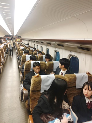 山梨県立青洲高等学校 > 学校行事 > 修学旅行3日目最終 2024年11月27日カテゴリー: 学校行事 修学旅行3日目最終 11/27 19:06 普通科 博多のホテルに着きました 11/27 18:18 普通科 新幹線さくら、乗れました。4列シート広々快適。 無事時間通り乗車し出発しました。福岡駅目指してあと少し頑張ります。