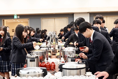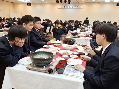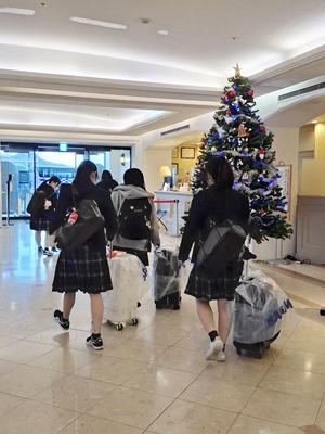 修学旅行4日目最終日となりました。外は雨、少し肌寒いです!朝食を済ませ、荷物をまとめバスで福岡へ出発です。太宰府天満宮を参拝し福岡空港に向かう予定です!