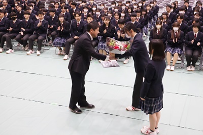 また、会後、年次主任に対し、3年次生より、感謝の言葉と記念品が贈られました。