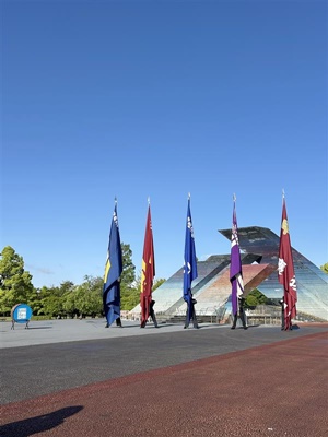 7日(水)から3日間行われる山梨県高校総体の開幕に向け、例年執り行われている一番旗に山梨県高校応援連盟として参加しました。