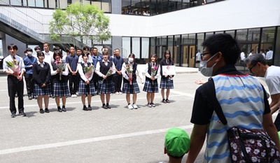 青洲高校のお隣にある、ひかりの家の園児たちが、「花の日」を記念し、