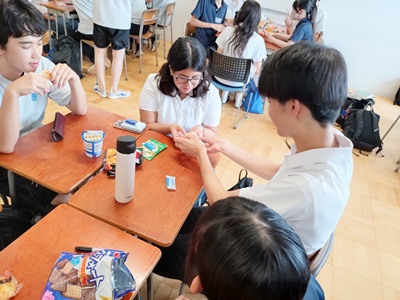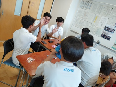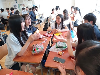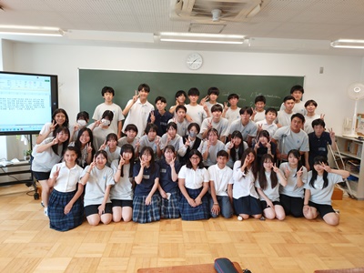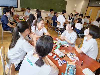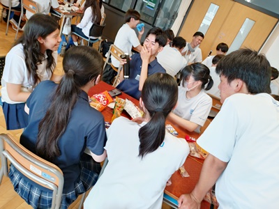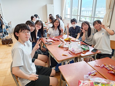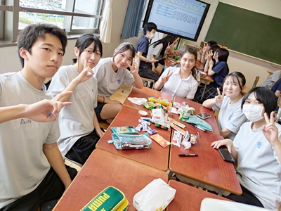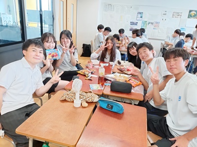 山梨県立青洲高等学校 > 教育活動 > 普通科 > 留学生との生活~英語の授業~ 2025年7月3日カテゴリー: 普通科 教育活動 青洲DIARY 学校生活 留学生との生活~英語の授業~ 2年次普通科の英語の授業では、留学生への歓迎パーティーを開きました。 どちらの生徒もとても楽しそうに過ごしていました。 何かと暗い話題ばかりがクローズアップされる国際情勢ですが、国や言語の壁を越えて交流する生徒たちが小さな外交官のように見えてきて、両国の明るい未来が期待できるのではないかと思えました。