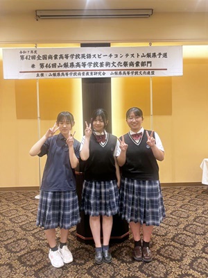 山梨県立青洲高等学校 > 教育活動 > 普通科 > 全商英語スピーチコンテスト山梨県予選 2025年7月8日カテゴリー: 普通科 教育活動 商業科 全商英語スピーチコンテスト山梨県予選 レシテーション部門には1年三浦、スピーチ部門に3年小笠原、窪田の3名が参加しました。 結果は窪田が最優秀賞に選ばれ、9月に行われる全国大会への出場が決まりました。 3人ともそれぞれよく頑張りました。