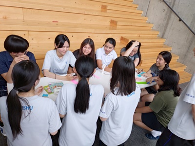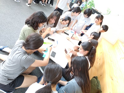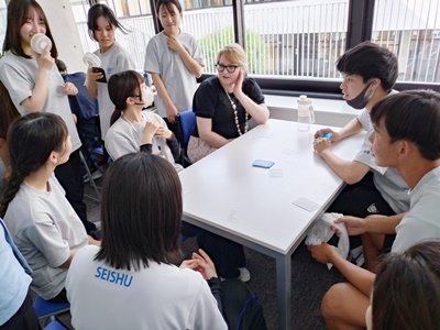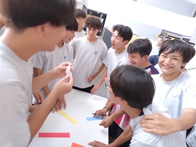 山梨県立青洲高等学校 > 教育活動 > 普通科 > 留学生との生活~2年E類型英語探求の授業~ 2025年7月16日カテゴリー: 普通科 教育活動 青洲DIARY 学校生活 留学生との生活~2年E類型英語探求の授業~ 2年次生英語類型の授業で、留学生との最後の交流授業を行いました。生徒たち自身が、昨年からこれまでの期間での語学力の成長を実感できたようで、自信を持って堂々とコミュニケーションをとっていました。双方の生徒の弾けるような笑顔が見ることができ、教員冥利に尽きました。
