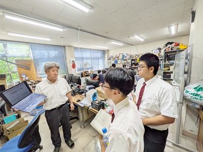 山梨県立青洲高等学校 > 部活動 > 工業研究 > 工業研究部 山梨大学技術研修と学内見学報告 2025年8月22日カテゴリー: 部活動 工業研究 工業研究部 山梨大学技術研修と学内見学報告 8月21日、 工業研究部は、山梨大学工学域 機械工学系 丹沢研究室( 「ステレオカメラを用いた画像処理の研究」「相互相関を用いた雑音に強い超音波センサの研究」 など)、北村研究室( 「ドローン物流による騒音影響シミュレーション」 「コヒーレンス関数を用いた遠距離騒音源特定の試行」 など)の技術研修と学内見学を行いましたので報告します。 今回の研修活動をロボットアイデア甲子園に活かしたいと思います。