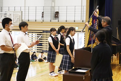 校外の活動にて優秀な成績を収めた生徒による納め式が行われました。