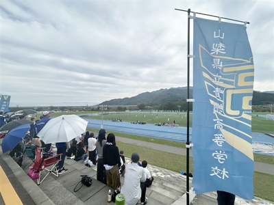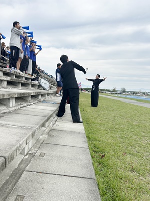 山梨県立青洲高等学校 > 部活動 > 応援 > 高校サッカー山梨県予選対駿台甲府 2025年10月14日カテゴリー: 部活動 応援 高校サッカー山梨県予選対駿台甲府 10月13日、高校サッカー山梨県予選の2回戦、対駿台甲府戦の応援にやって参りました。 本校にとって大一番となるこの大会で応援もチームと一丸となって後押しができるよう全力で応援して参ります。