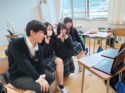 Zoomを使って、インドネシア、台湾、トルコ、フィリピンの高校生とリアルタイムで交流を行いました。