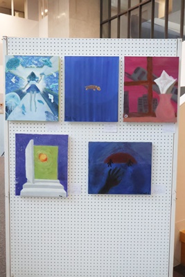 美術選択者の授業課題の展示が行われています。