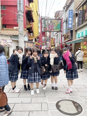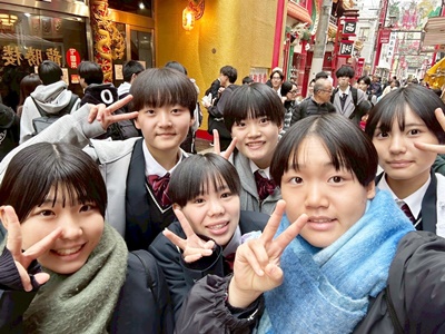 2-1、2-2、班別活動の写真です!長崎中華街での楽しそうな1コマです!