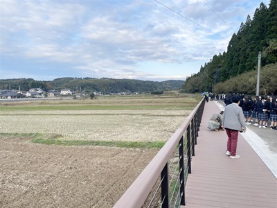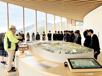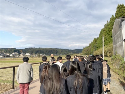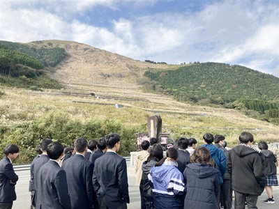 山梨県立青洲高等学校 > 学校行事 > 修学旅行3日目⑧ 2025年11月19日カテゴリー: 学校行事 修学旅行3日目⑧ 1組、3組 二つ目の断層、布田川断層を見学、語り部さんの面白く熱い話を胸に刻んで、福岡の宿舎に向かいます!2時間ほどかかる予定です! 南阿蘇村での震災学習です。 被災した現場やガイドの方からの話を通して、「ホンモノ」に触れ、地震の恐ろしさを感じることができました。 熊本城にて 震災学習、阿蘇の旧東海大学にて 震災学習、阿蘇の旧東海大学にて