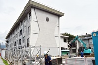 山梨県立青洲高等学校 > 学校生活 > 青洲DIARY > 市川高校校舎解体 2020年7月15日カテゴリー: 青洲DIARY 学校生活 市川高校校舎解体 市川高校の校舎の解体が始まりました。 恐竜のような重機が、あっという間に渡り廊下を削り取ってしまいました。 市川高校校舎での勤務経験はありませんが、やはり切なさを感じてしまいます。 新しいものが生まれるとき、失われるものもあることに気付かされます。 校舎跡地には体育館とテニスコートが建設予定です。