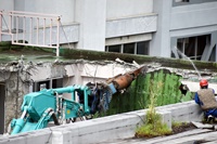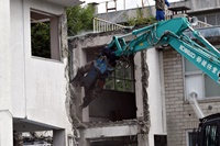 恐竜のような重機が、あっという間に渡り廊下を削り取ってしまいました。