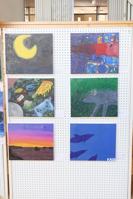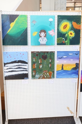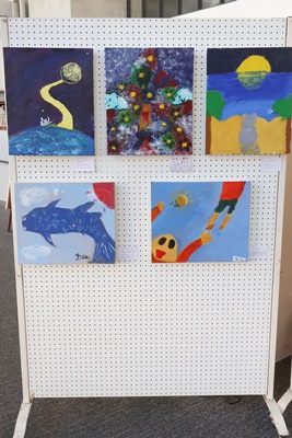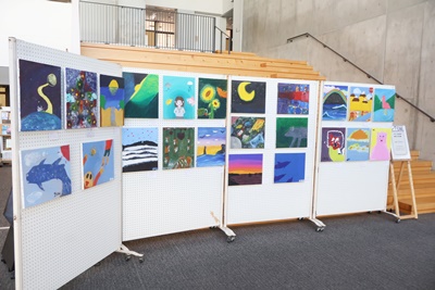 現在、1年7,8組油彩画の展示が行われています。