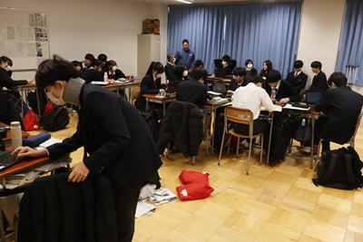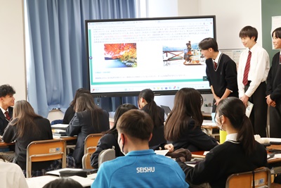 青洲学では、年次を超えた班を作り、テーマを決め、