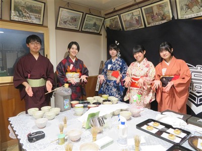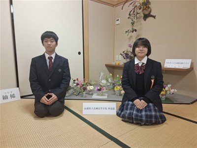 本校華道部も作品を出展し、茶道部は、おもてなし茶会を開きました。
