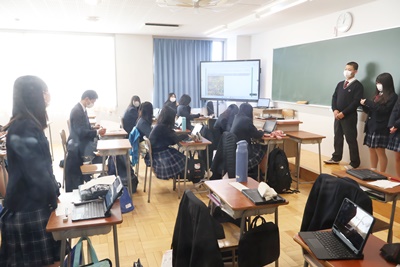 2年次の青洲学では、修学旅行先の九州と峡南地区の違いについて、