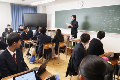 山梨県立青洲高等学校 > 学校生活 > 青洲学 > 2年次青洲学研究発表会 2026年1月23日カテゴリー: 青洲学 学校生活 2年次青洲学研究発表会 2年次の青洲学の研究発表会が行われました。 2年次の青洲学では、修学旅行先の九州と峡南地区の違いについて、 歴史、防災、産業などについて研究を行いました。 本日は、研究に該当する企業の方をお招きし、発表を行い、講評をいただきました。