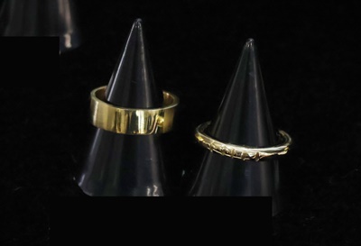 真鍮平打ち、甲丸リングの展示です。