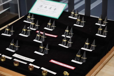 山梨県立青洲高等学校 > 学校生活 > 青洲DIARY > 金属工芸選択者作品展示 2026年2月3日カテゴリー: 青洲DIARY 学校生活 金属工芸選択者作品展示 学科横断科目、金属工芸選択者の授業課題の展示が行われています。 真鍮平打ち、甲丸リングの展示です。