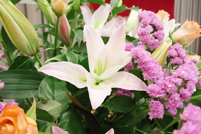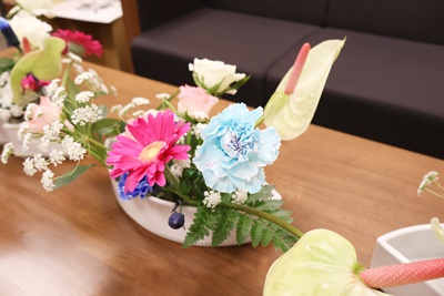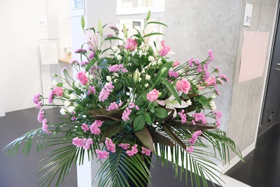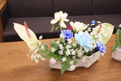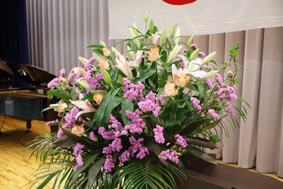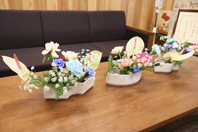 明日の入学式のために、華道部により式場や玄関など、生け花の飾り付けが行われました。
