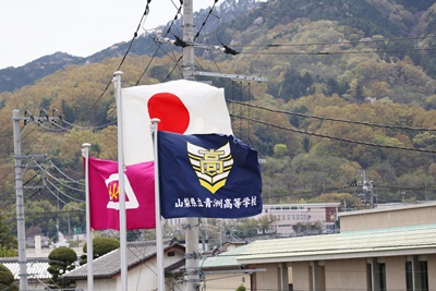 さて、本校は、増穂商業高等学校、市川高等学校、峡南高等学校の3校が統合し、令和2年に開校しました。校名は、市川三郷町にかつて存在した「青洲文庫」に由来し、青春を謳歌する若者の姿と、3つの清流に囲まれたこの地から、未来の峡南地域、そして社会を支える人材を育てたいという願いが込められています。