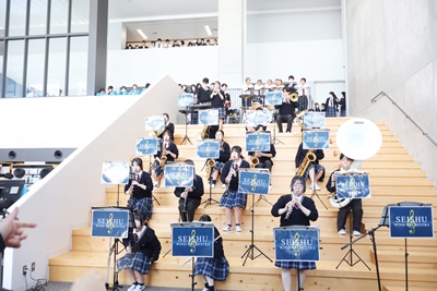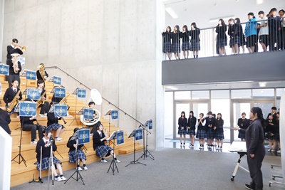 吹奏楽部の昼休みミニ演奏会がアカデミックスクエアにて行われました。