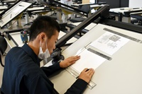 山梨県立青洲高等学校 > 教育活動 > 工業科 > 9/2 土木工学科 製図実習 授業 2020年9月2日カテゴリー: 工業科 教育活動 青洲DIARY 学校生活 9/2 土木工学科 製図実習 授業 土木工学科を選科した専門的分野の実習が始まってから、 製図版を用いた本格的な製図の実習が行われています。 本日で3回目の製図の実習となります。