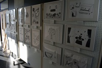 今週は1年1,2組の美術選択者の課題が展示されていました。