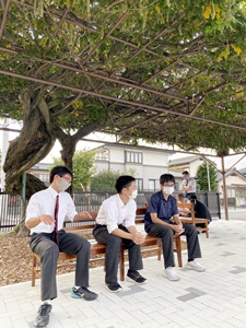 山梨県立青洲高等学校 > 教育活動 > 工業科 > 10/13 ベンチ市川三郷町へ寄付 2020年10月13日カテゴリー: 工業科 教育活動 青洲DIARY 学校生活 10/13 ベンチ市川三郷町へ寄付 市川高校にあった木製ベンチを、工業科が修繕、組み立て直し、 市川三郷町に寄付しました。 ベンチは、本校職員駐車場に隣接する 代官所の藤の藤棚の下に配置されました。 当日は新聞・テレビなどのメディアの取材も受けました。 5月頃には今年もきれいな藤の花が咲きました。 お近くに立ち寄りの際はぜひご利用ください。
