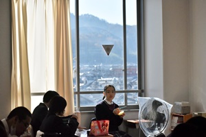 青洲高校では昼食時、換気を行うよう保健委員の放送が行われています。