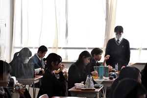 昼食時は今年度は一貫して前を向いて静かに昼食をとる光景が続いています。