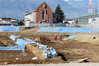 山梨県立青洲高等学校 > 学校生活 > 青洲DIARY > 市川高校校舎跡地埋蔵文化財調査 2020年12月23日カテゴリー: 青洲DIARY 学校生活 市川高校校舎跡地埋蔵文化財調査 市川高校校舎跡地の埋蔵文化財の調査が行われています。 調査終了後、体育館とテニスコートが建設される予定です。